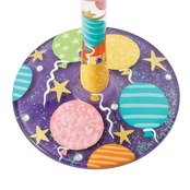 カラフルな風船、星、まばゆいクリスタルが散りばめられた ポップなデザインのワイングラスになっています。