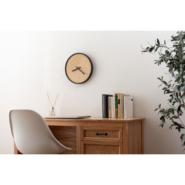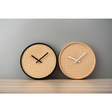 それぞれの素材が持つ美しさを活かしたウォールクロック。やさしい風合いのラタン調デザイン、親しみある天然木フレーム、洗練されたメタルの3アイテムをラインナップ。空間になじみながらも、しっかりとした存在感でインテリアを引き立ててくれます。針の音が気にならない静音タイプなので、書斎や寝室にもおすすめです。