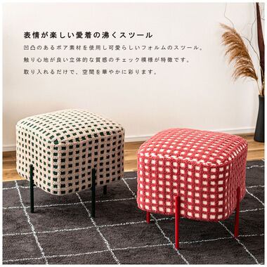 ●凹凸のあるボア素材を使用した可愛らしいフォルムのスツール。