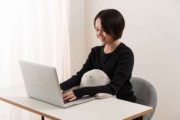 お座りクッションは、おなかに抱えて使うことで自然と背筋が伸び、猫背を防止。